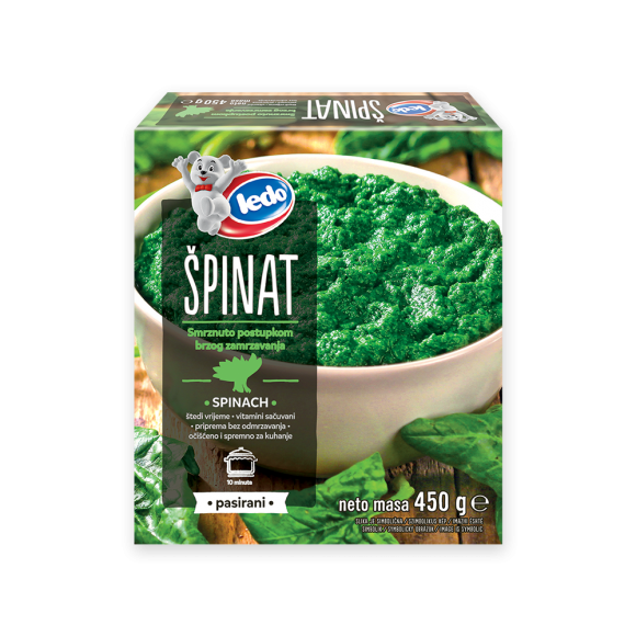 Prije pripreme proizvod nije potrebno odmrzavati. Za pripremu proizvoda špinat je potrebno kuhati u loncu 10 minuta.